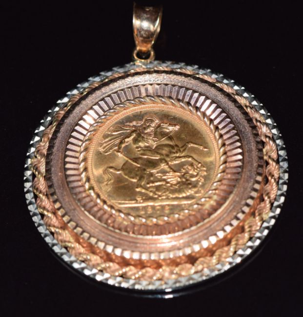 1976 gold full sovereign in a 9ct gold pendant mount, 18.3g