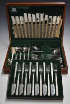 Viner's Studio retro 12 place setting canteen of stainless steel cutlery and boxed set of matching knives and forks, width of main canteen 39.5cm