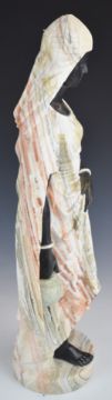 A finely carved variegated marble figurine of North African water carrier in black and veined marble, H62cm