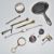 A collection of items including silver mirror, silver brooches, cigar cutter, seal, silver pencil, two propelling pencils with jewelled finials, hallmarked silver nursing badges for Bath and Derby etc