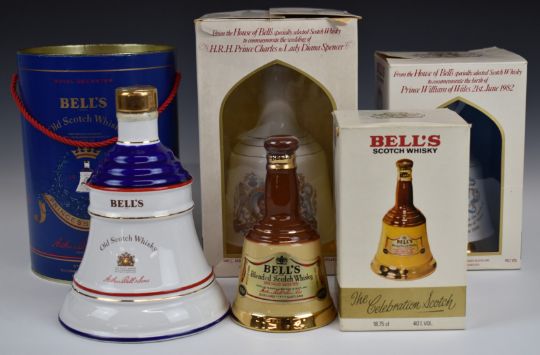 Four Bell's Scotch Whisky bell decanters, three commemorating Royal events, all boxed