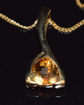 A 9ct gold pendant set with citrine on 9ct gold chain, 5.5g