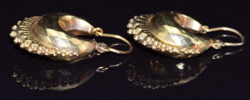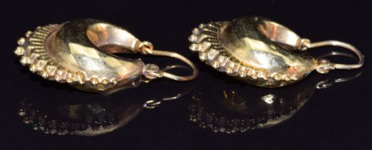 A pair of 9ct gold earrings with faceted decoration, 1.8g