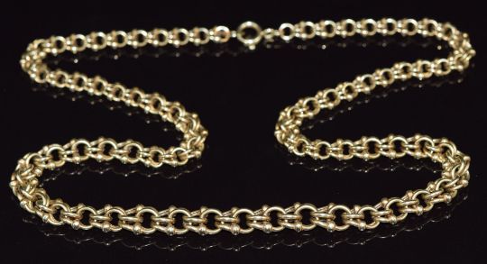A 14k gold graduated sphere oval link necklace, 24.2g