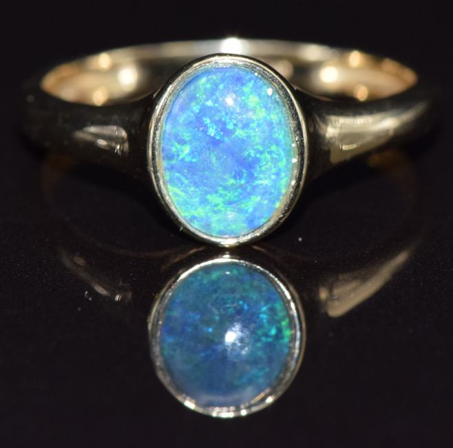 A 9ct gold ring set with an opal triplet, size N, 1.7g
