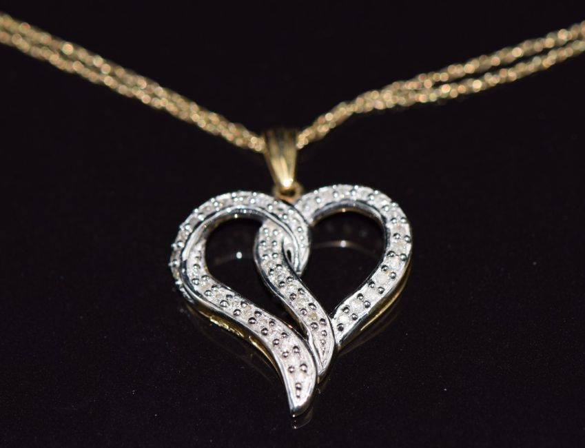 A 9ct gold heart pendant set with diamonds on 9ct gold chain, 2.9g, length 2.5cm