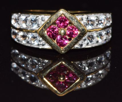 A 9k gold ring set with spinel and topaz, size M, 3.8g