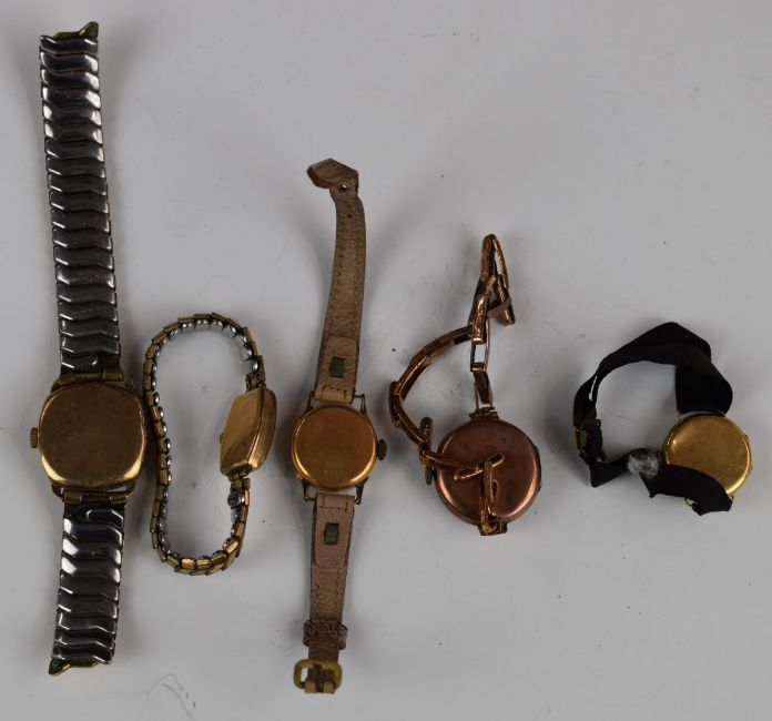Five various ladies wristwatches comprising two 18ct gold and three 9ct gold, one on 9ct gold expanding bracelet.