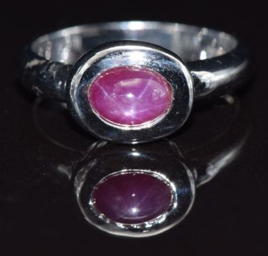 A 9ct white gold ring set with a synthetic star ruby, size M, 4.4g