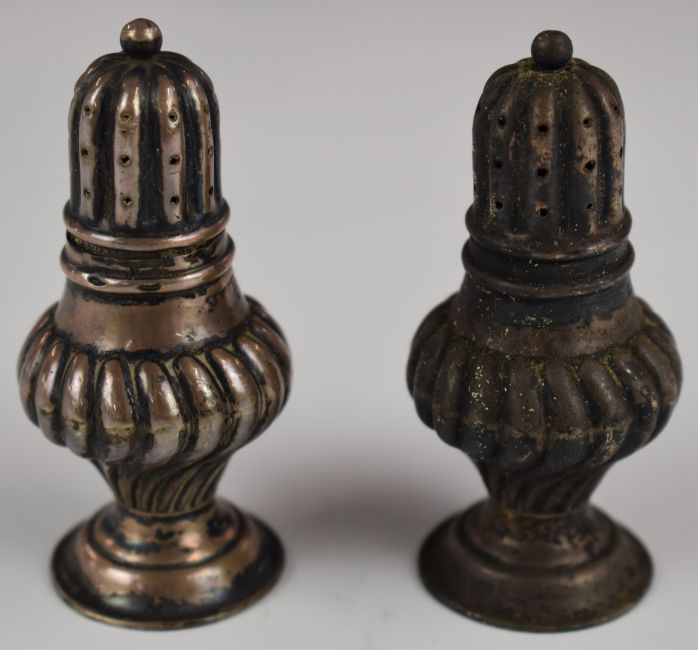 Pair of Victorian hallmarked silver peppers with wrythen decoration, London 1897, maker Cornelius Desormeaux Saunders & James Francis Hollings, height 7cm, weight 37g