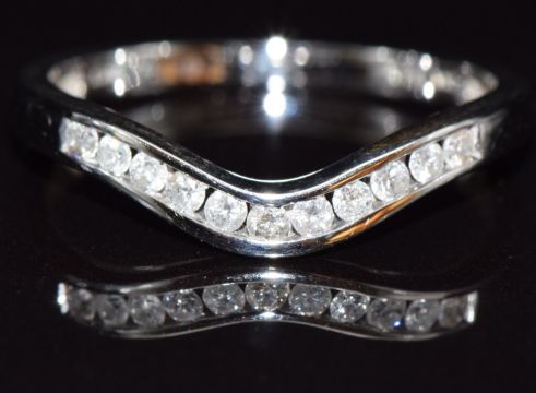 A 9ct white gold half eternity ring set with diamonds, total diamond weight approximately 0.2ct, size P, 2.4g