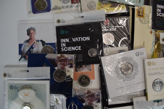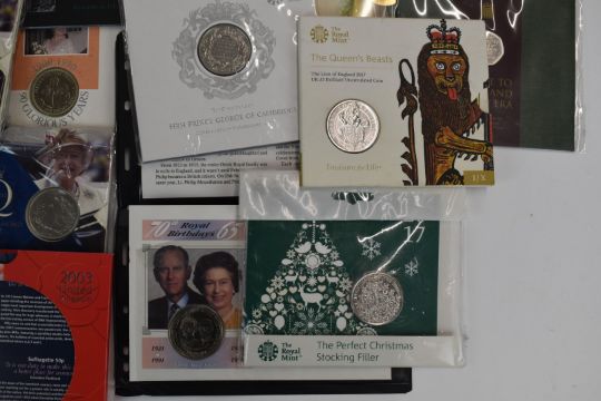 Twenty largely Royal Mint presentation packs comprising 50p etc, Queens Beast, Olympic and Royal commemorative examples
