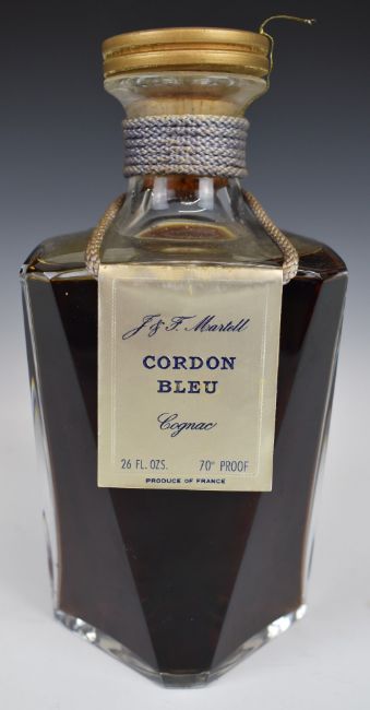 J&F Martell Cordon Bleu cognac, 26fl ozs, 70% proof in Baccarat decanter/bottle