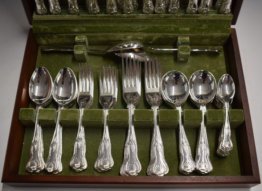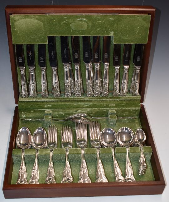 Ten place setting canteen of King's pattern silver plated cutlery, width of canteen 39cm