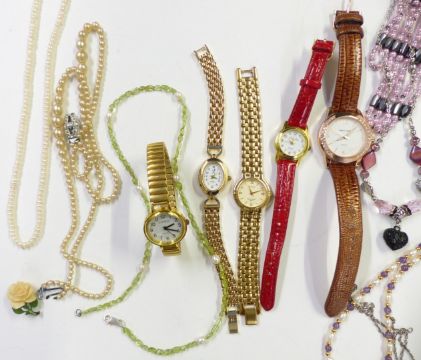 A collection of jewellery including French jet pendant, Napier necklace, silver ring, silver and 9ct gold ring, filigree brooch etc