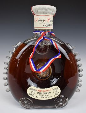 Remy Martin Grande Champagne Cognac, Very Old, Age Unknown, in Baccarat decanter, with label stating 'This Cognac was served to King George VI and Queen Elizabeth in 1938 and to Queen Elizabeth II in 1957', with box and wicker basket