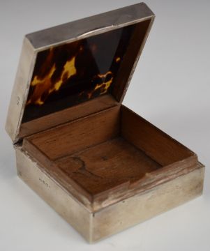 George V hallmarked silver and tortoiseshell cigarette box, Birmingham 1922, maker Percy James Finch, width 8.5cm