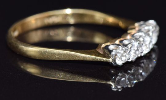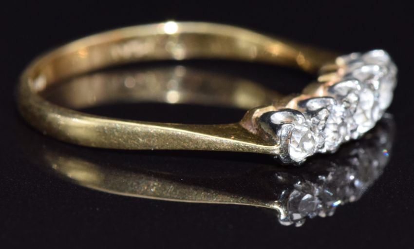 An 18ct gold ring set with five old cut diamonds, size Q, 3g