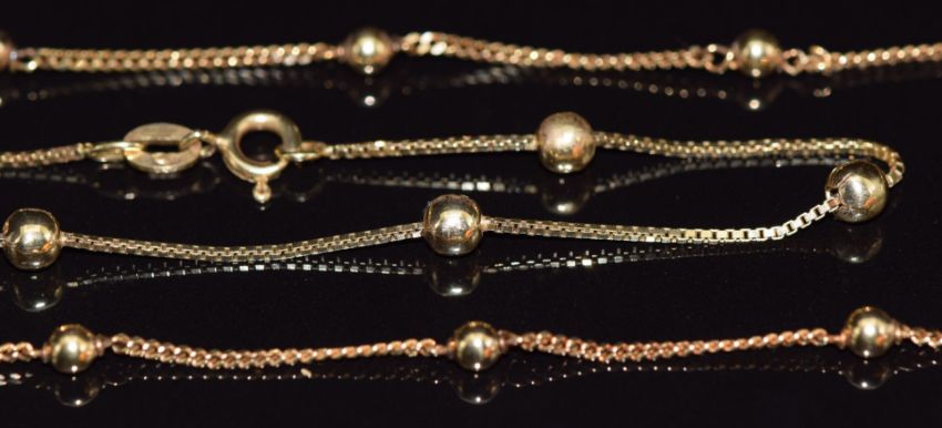 A 9ct gold necklace and matching bracelet made up of curb and sphere links, 6.5g