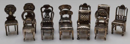 Set of twelve (six pairs) of place card holders in the form of chairs, H5cm