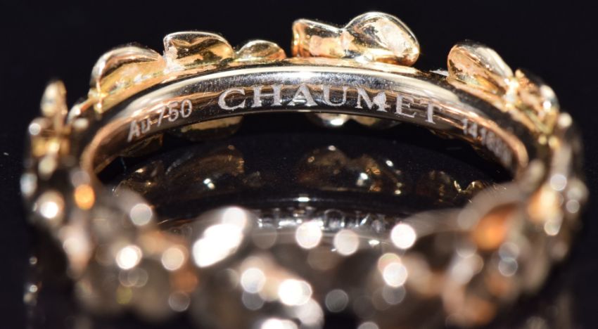 Chaumet 18ct gold ring in a floral design, in original box, size N, 5.9g