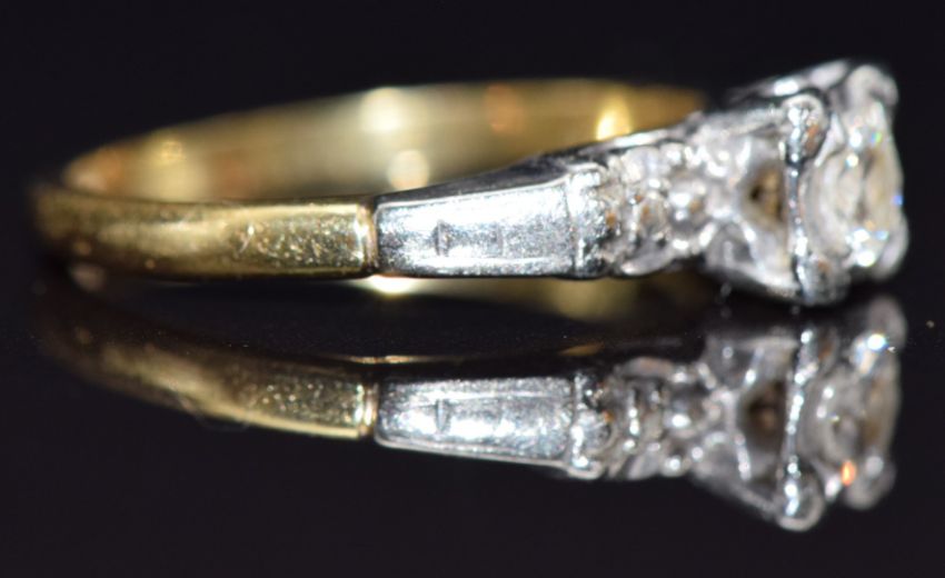 An 18ct gold ring set with a diamond of approximately 0.15ct in a platinum setting, size I, 2.8g