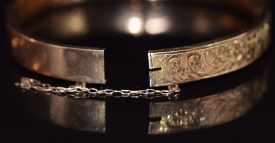 Victorian 9ct rose gold bangle with engraved ivy decoration, Chester 1895, and an Edwardian 9ct rose gold bangle with engraved floral decoration, Chester 1909, 13.2g