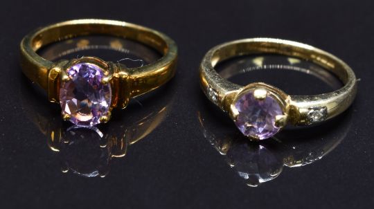 Two 9ct gold rings set with amethysts, size N, 4.5g