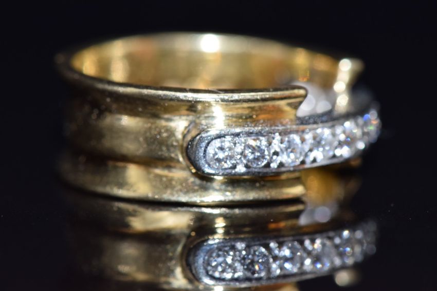 An 18ct gold ring set with diamonds, size P, 7.3g
