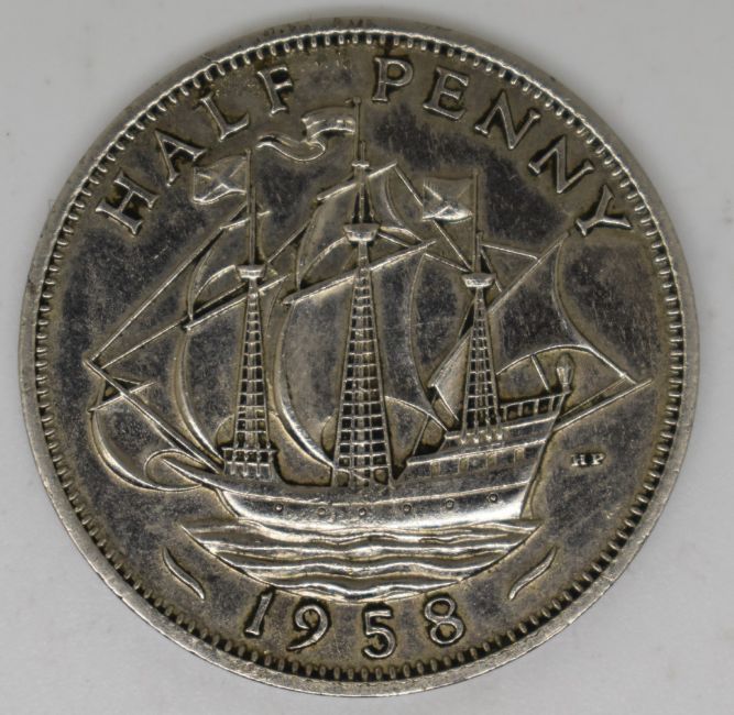 1958 halfpenny error, struck in cupronickel