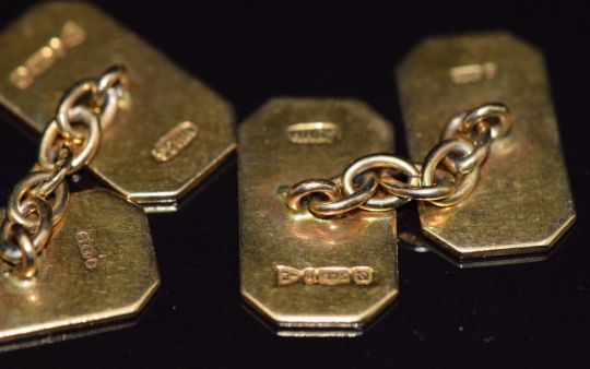 A pair of 9ct gold cufflinks with engine turned decoration, 8.5g