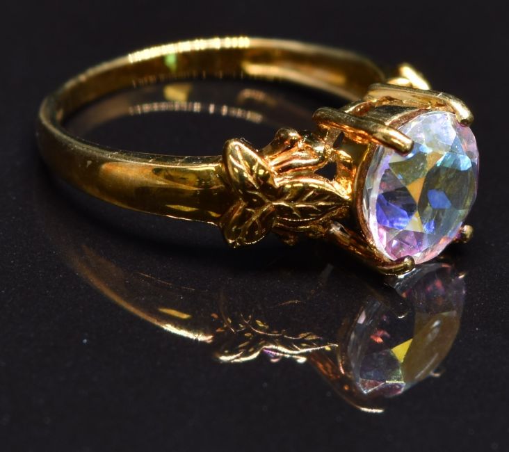 A 9k gold ring set with mystic topaz, size N, 3g