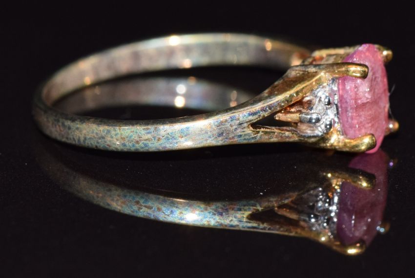 A 9k gold ring set with pezzottaite and diamonds, size N, 1.9g