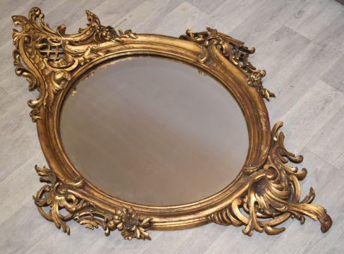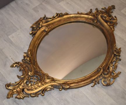 19th/20thC royalcore gilt framed mirror with flower and swag decoration, 132 x 91cm