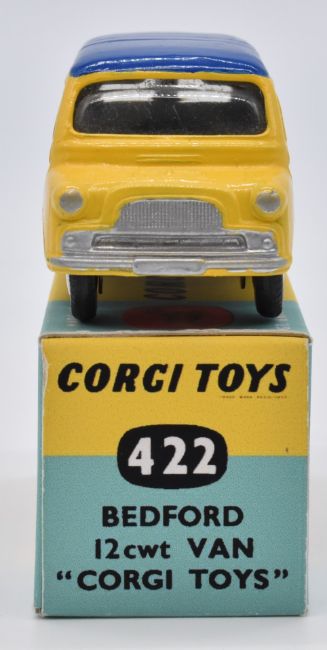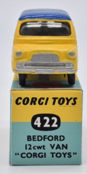 Corgi Toys diecast model Bedford 12cwt Van 'Corgi Toys' with yellow body, blue roof and flat hubs, 422, in reproduction box.