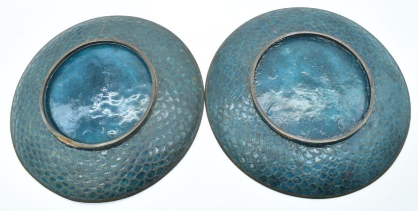 A pair of Japanese cloisonné enamel chargers decorated with birds, flowers and foliage, diameter 30cm
