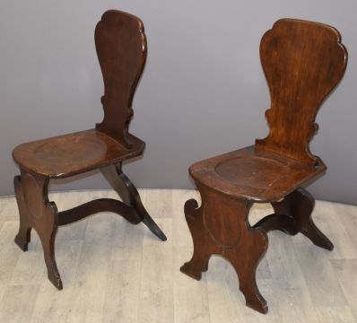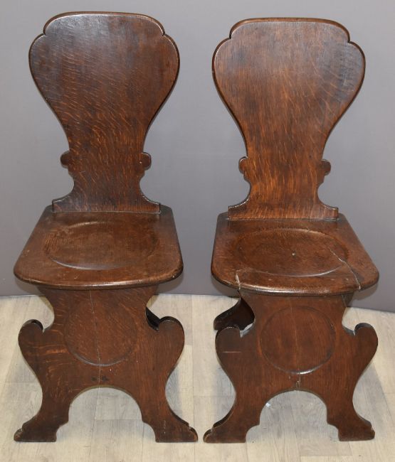 Pair of 19thC oak hall chairs