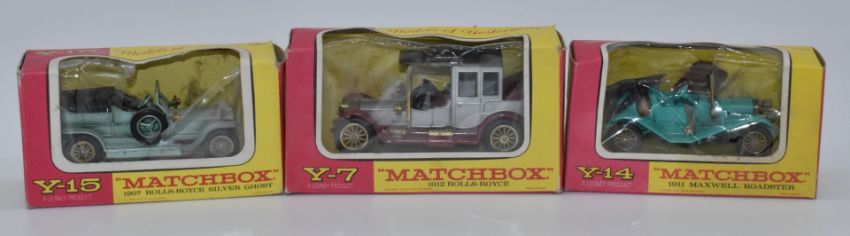 Ten Matchbox Models of Yesteryear diecast model vehicles including King Size Merryweather Fire Engine, Curtiss Wright Rear Dumper etc, all in original boxes.