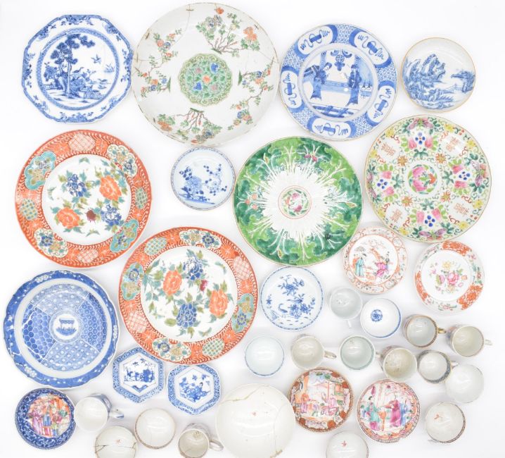 Large collection of 18th/19thC and later Chinese porcelain plates, dishes, coffee cans, tea bowls, etc