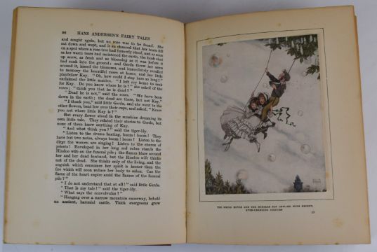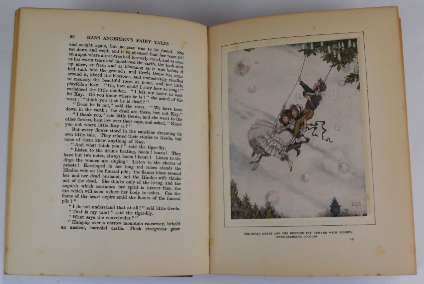 Hans Andersen’s Fairy Tales with Illustrations by W. Heath Robinson published Boots (c.1930) with 16 tipped-in colour plates and black & white illustrations, bound in gilt cloth, Idylls of The King by Alfred Tennyson with coloured illustrations by Eleanor Fortescue Brickdale, published Hodder & Stoughton (1911) tipped in plates with decorative mounts and lettered guards with black & white decorated initials, bound in gilt decorated cloth (2)
