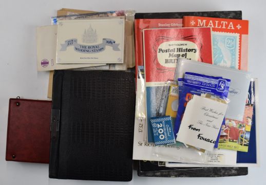A tray of sundries including a GB cover album, an all world album, mint and used GB including Machins, commemoratives, booklets etc