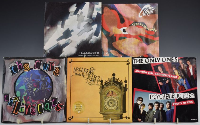 Approximately 35 singles from late 1970s to 2000s including The Cure, Laura Marling, Arcade Fire etc