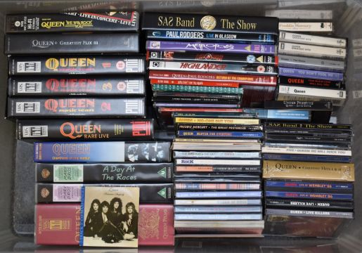 Queen - A collection of DVDs, CDs, VHS tapes and cassettes