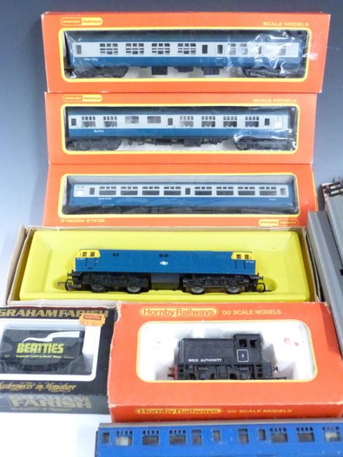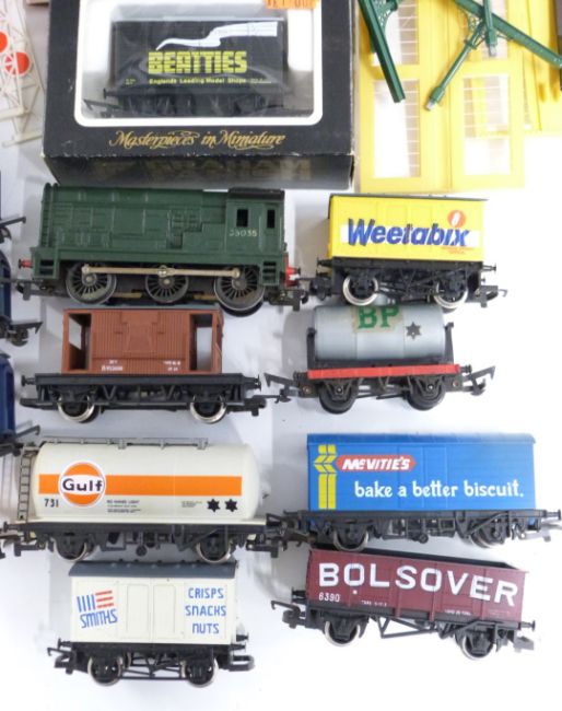 A collection of Hornby, Graham Farish and similar 00 gauge model railway locomotives, coaches, wagons and accessories, some in original boxes.