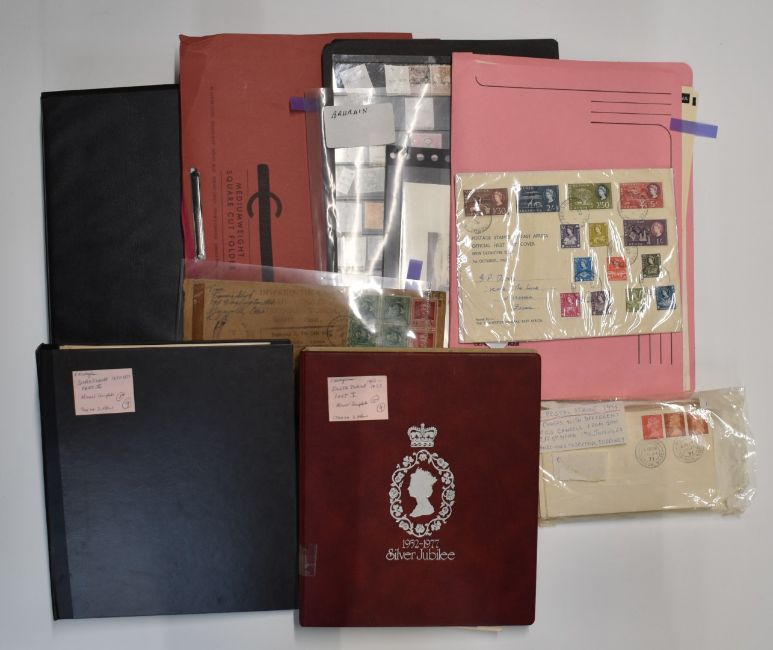 A collection of mint and used GB Commonwealth stamps in three folders and on stockpage including Australia Kangaroo Officials, Tin Can mail cover and a folder of China stamps including two covers.
