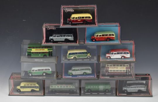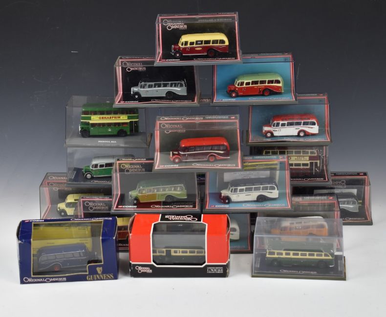 Twenty-two Corgi Original Omnibus Company (OOC) 1:76 scale diecast model buses and coaches, all in original display boxes.