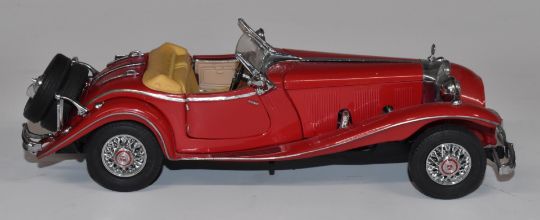 Four Franklin Mint diecast model vehicles comprising 1928 Stutz Black Hawk Boattail Speedster, The 1930 Bugatti Royale Coupe Napoleon, The Mercedes 500K Special Roadster and 1953 Chevrolet Corvette, all in original boxes.