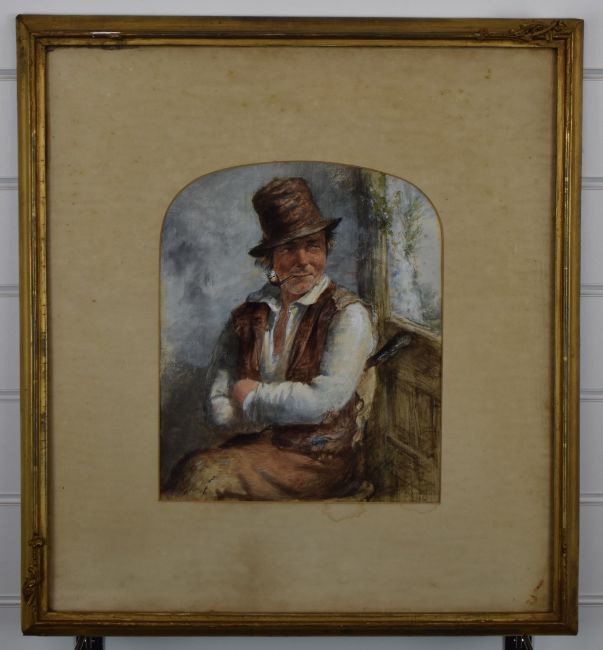 James Drummond (1816-1877) watercolour portrait of a fisherman or similar smoking a pipe, signed and dated 1866 lower right, 31 x 25cm, in gilt frame