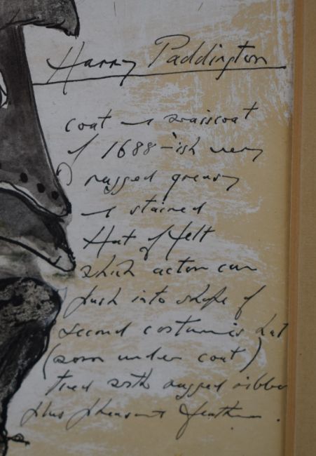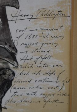 Pen, ink and gouache theatre costume study titled Harry Paddington, 34 x 23cm