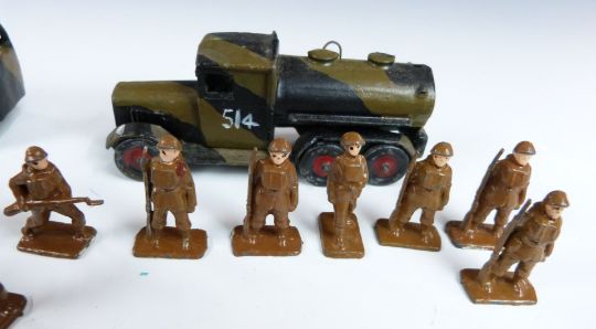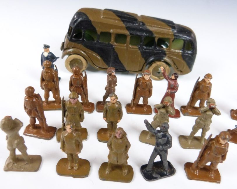 Thirty-two Skybirds diecast and lead model soldiers and vehicles.